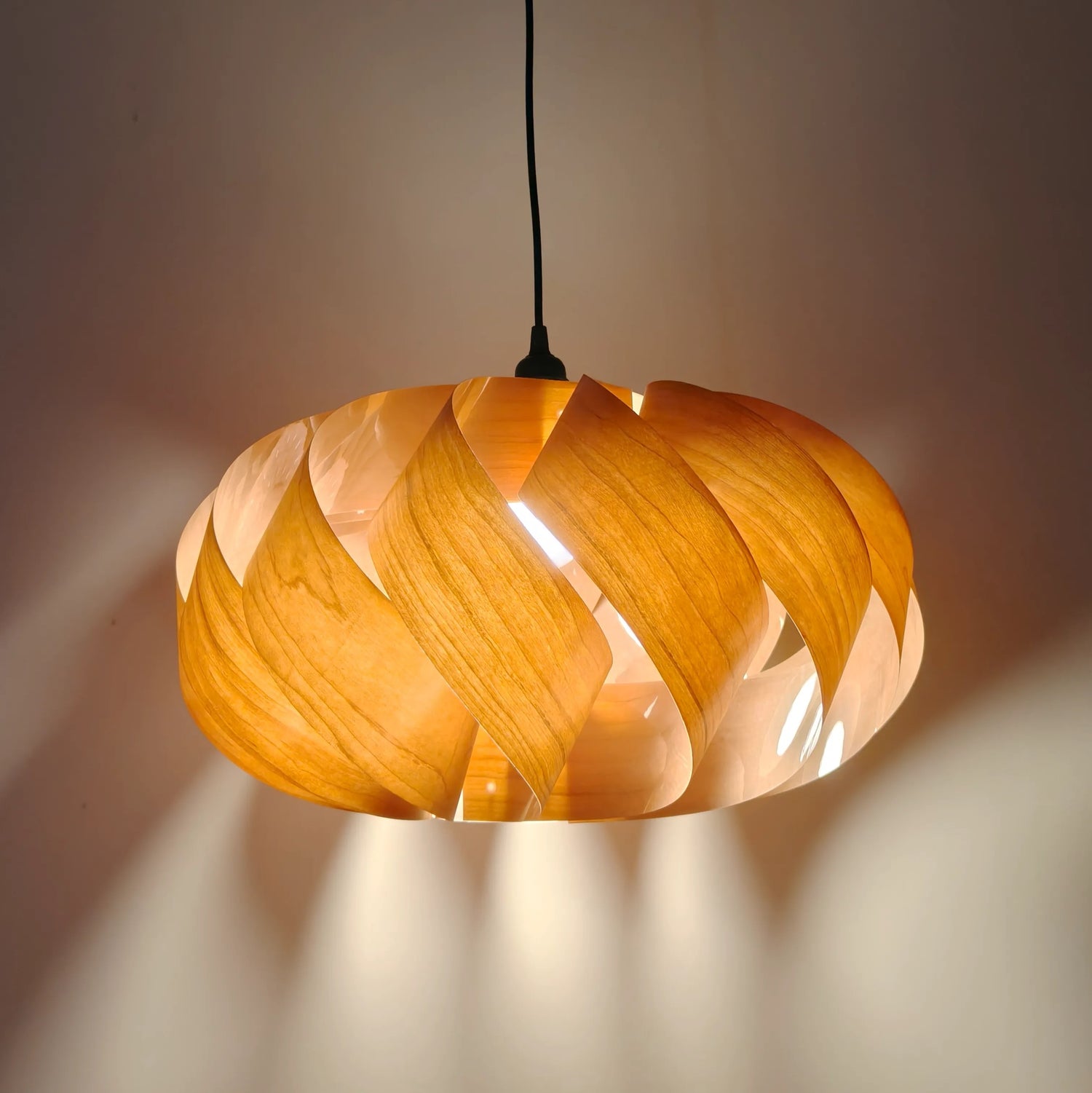 Nordic Wood Pendant Light Shade for Living Room | Natural Wooden Lampshade – E27/E26