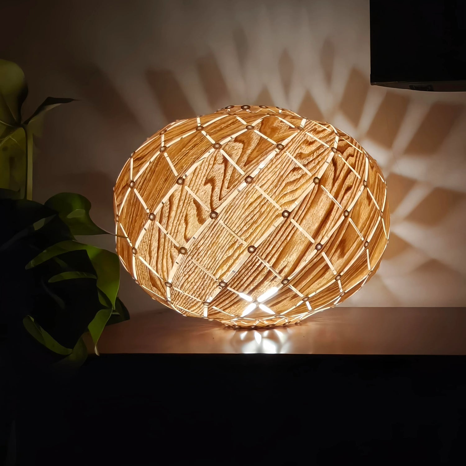 Abat-jour en forme d'œuf à faire soi-même pour lampes de table | Abat-jour suspendus en placage de bois 25 x 30 cm