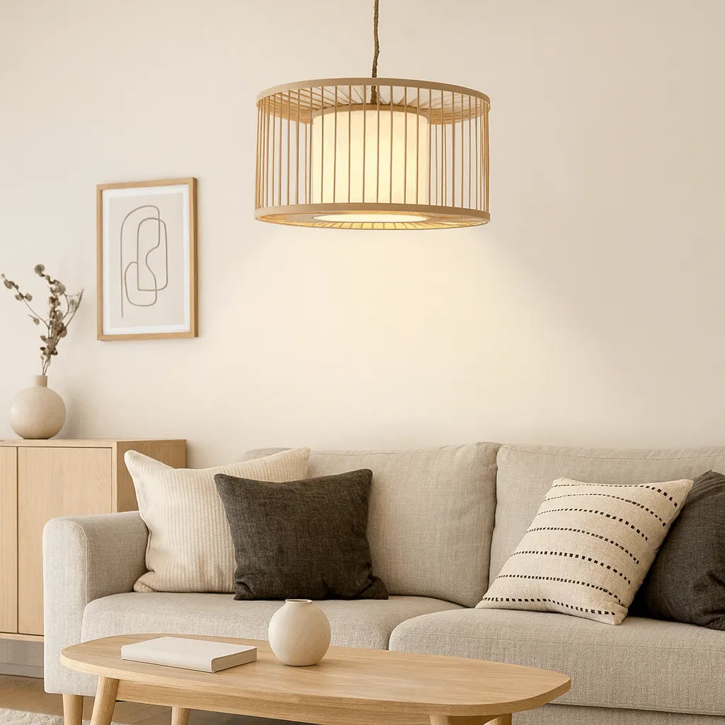 Drum Pendant Light / Bamboo Drum Lampshade |